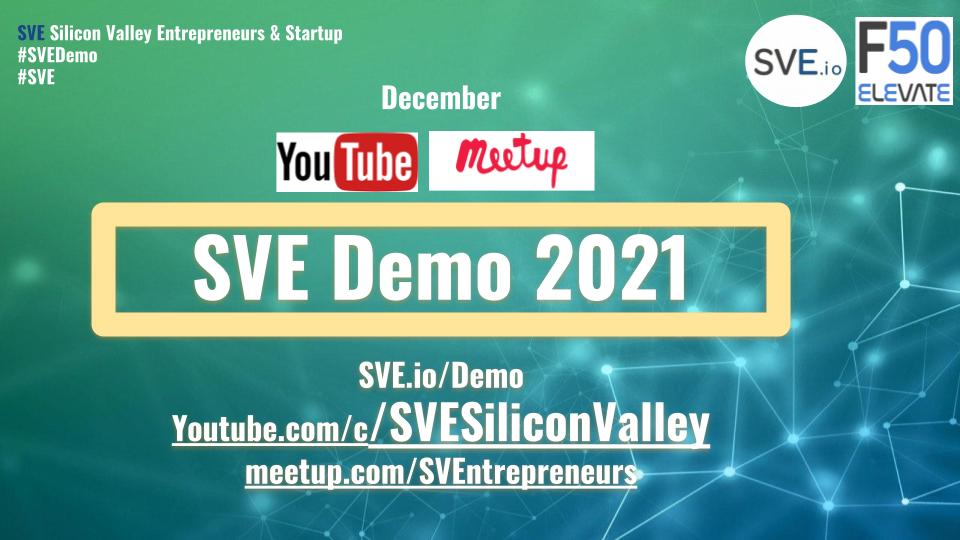 The 2nd annual SVE Demo 2021 on Dec 1- 8 globally online, now open for startup application and nomination! The event is hosted by the SVE (Silicon Valley Entrepreneurs), the largest grassroots community from Silicon Valley.