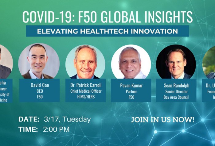 The ‘Home Shelter Policy’ announced yesterday by Bay Area Authorities to control COVID-19 outbreak and developing situation has created lots of challenges and uncertainty to the founders and investors in … Continue Reading COVID-19:Elevating HealthTech Innovation @ F50 Global Insights