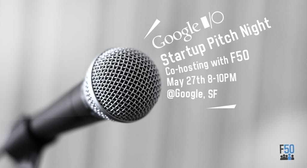 Google I/O Startup Pitch Night will take place on May 27, the night before Google I/O kicks off at their San Francisco HQ.Seven top startups will present with Google technologies to a group of celebrity judges from Sequoia and other top VCs, along with an audience of top founders, investors, and technologists. Prizes will be awarded to the winning teams, including acceptance into F50’s Season 5 class.If you know anyone who wants to Demo or if you would like to request an invite, see our event page.