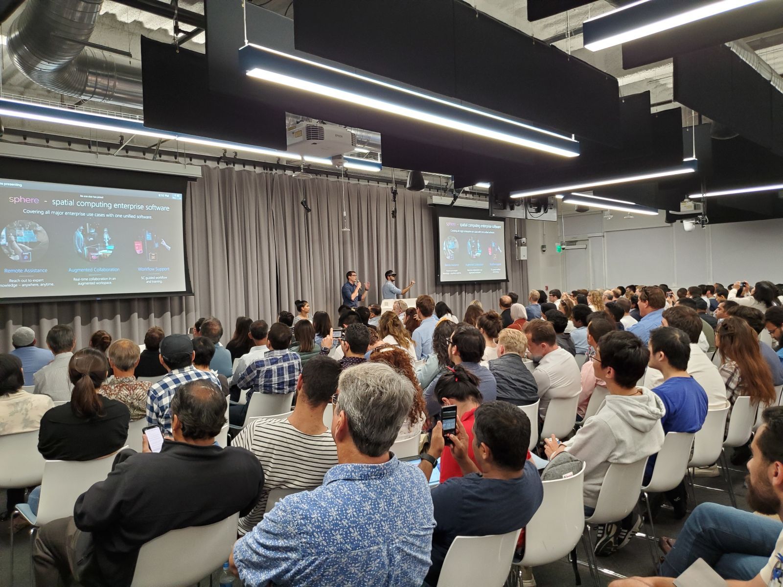 Investors, startups, and guests alike watch an impressive demo of Holo | One's AR technology.