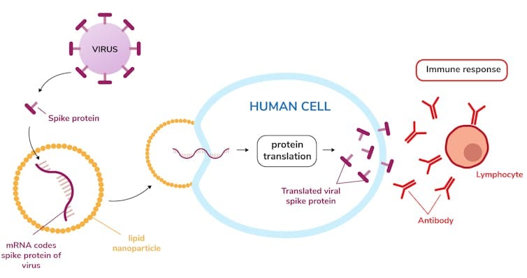 The vaccine provides just enough mRNA to make just enough of the spike protein for a person’s immune system to generate antibodies that protect them if they are later exposed to the virus. The mRNA in the vaccine is soon destroyed by the cell – just as any other mRNA would be. The mRNA cannot get into the cell nucleus and it cannot affect a person’s DNA.